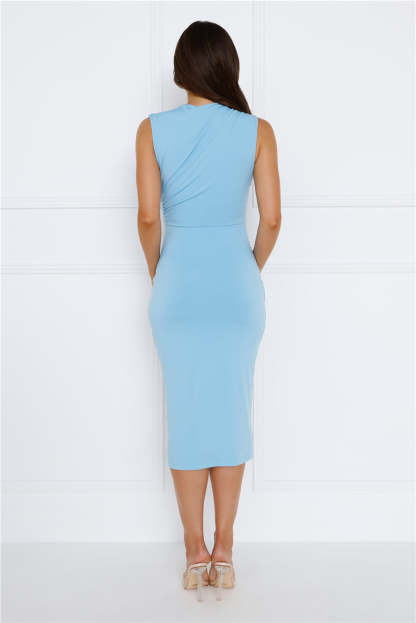 Lovely. this is a versatile dress you need! The Desk To Bar Midi Dress features a gathered detail to the sides and shoulder and a wrap tie detail to the front. Pair with heels for a day of style.