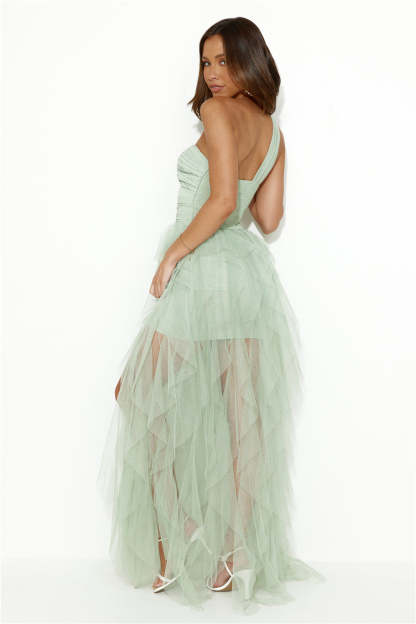 Extravagance Is Me One Shoulder Tulle Maxi Dress Sage