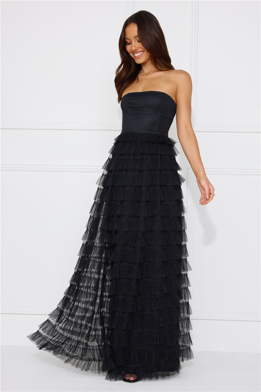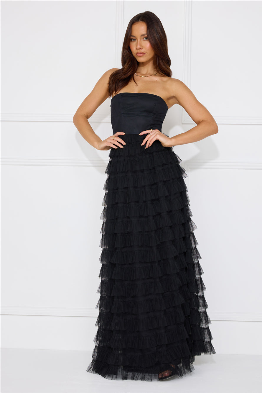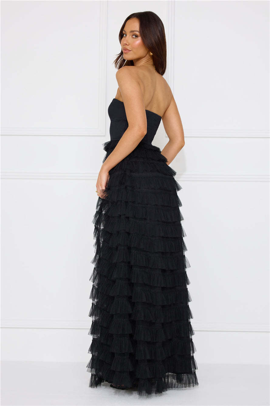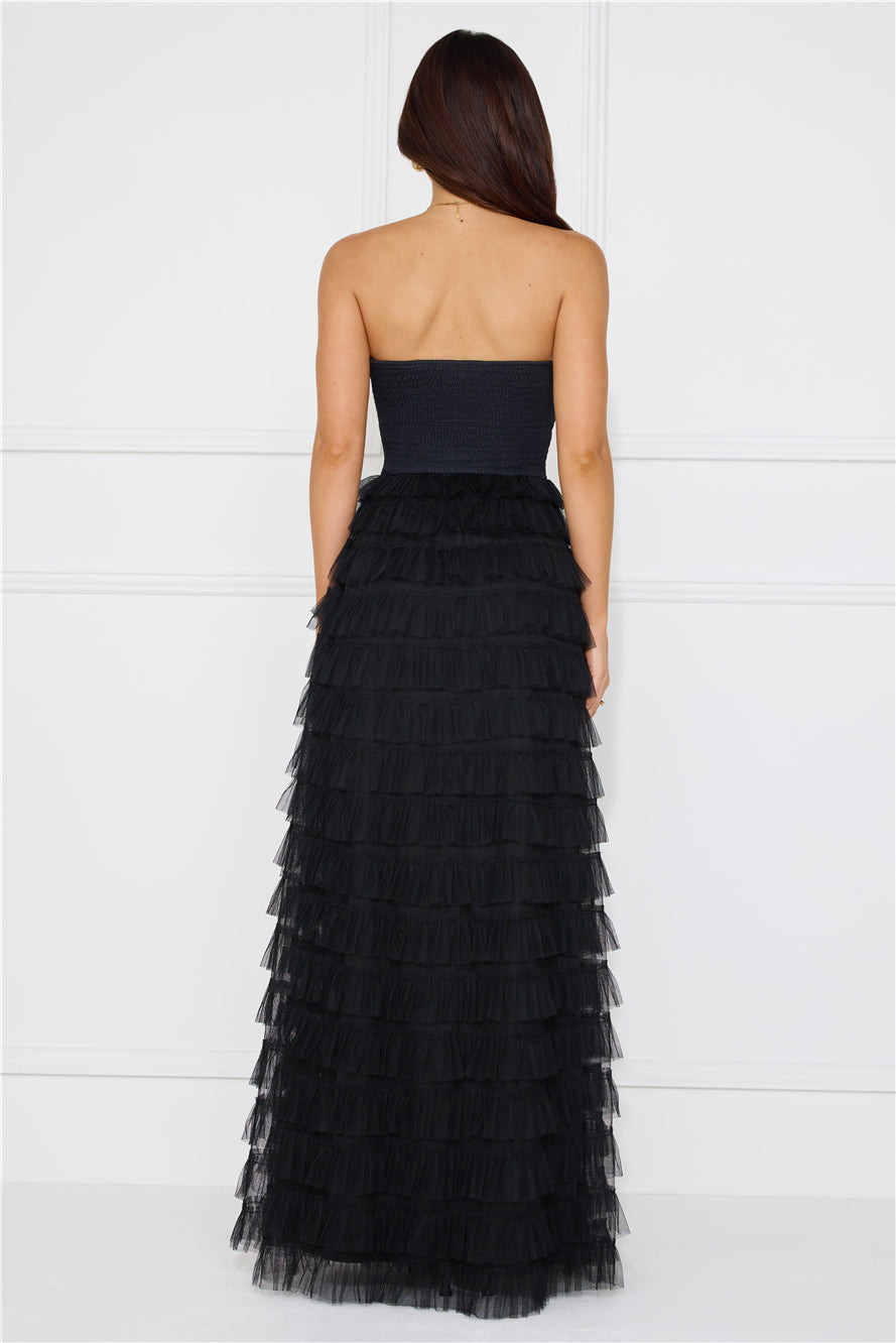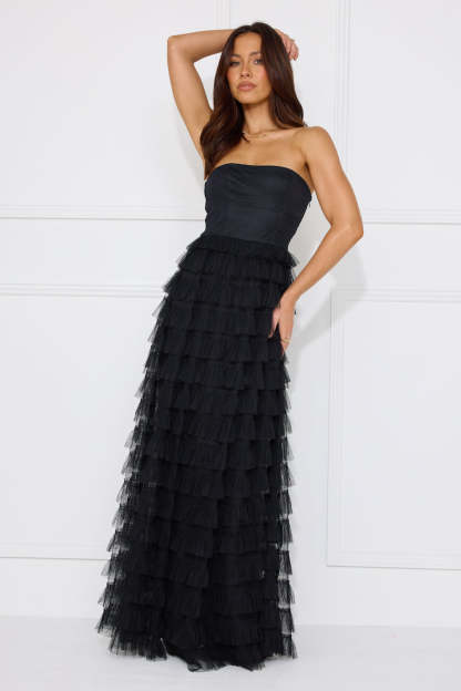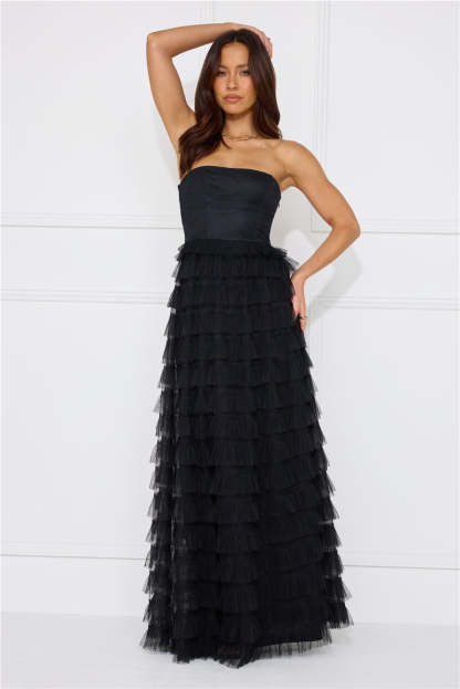 Honeyed Horizons Strapless Mesh Maxi Dress Black
