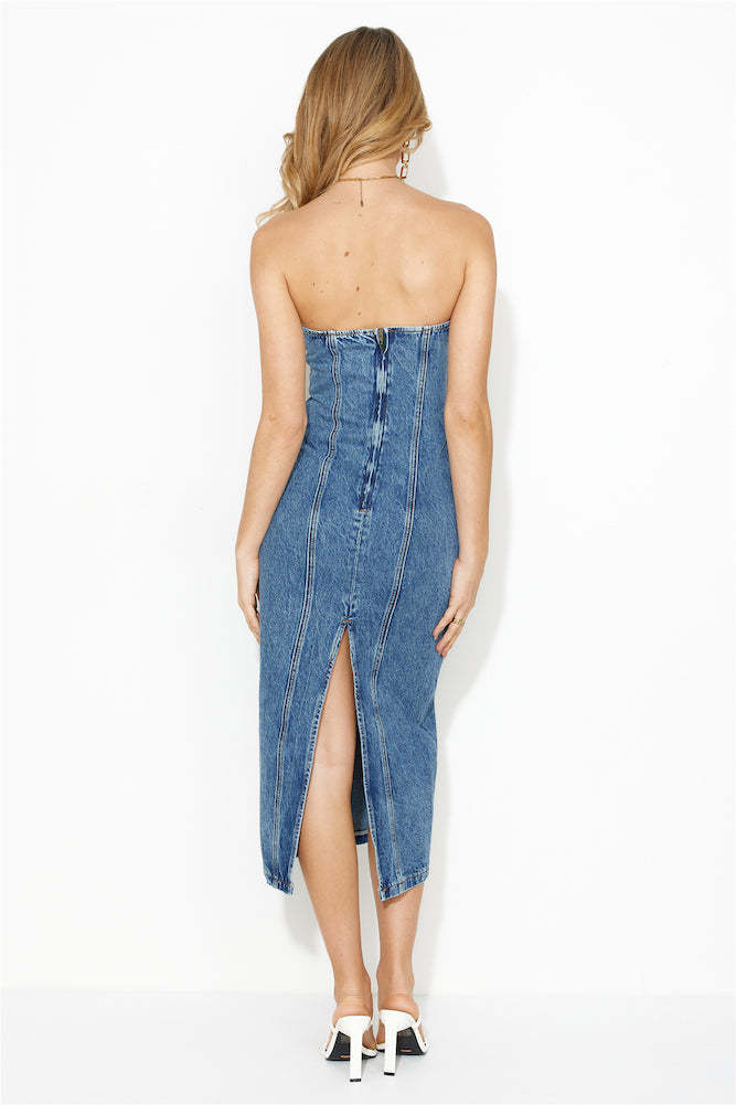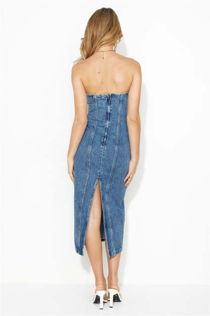 LIONESS Smokeshow Strapless Dress Blue Denim