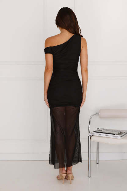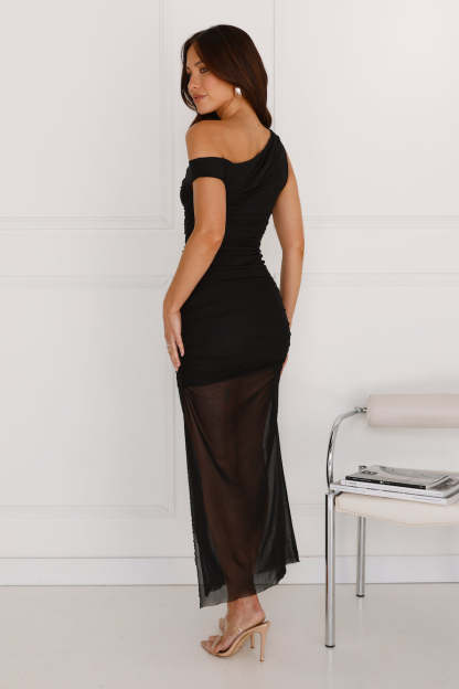 Love Stories Off Shoulder Mesh Maxi Dress Black