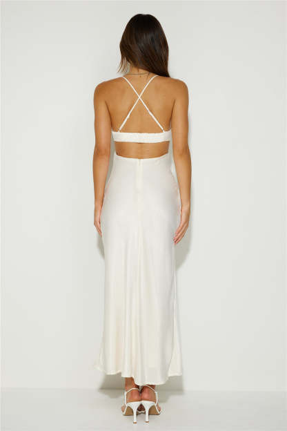 Magic In Her Vibe Satin Maxi Dress Champagne