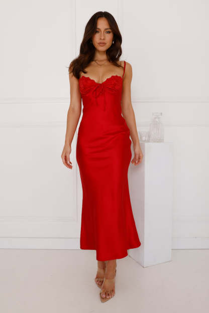 Piece Of Perfection Satin Maxi Dress Red