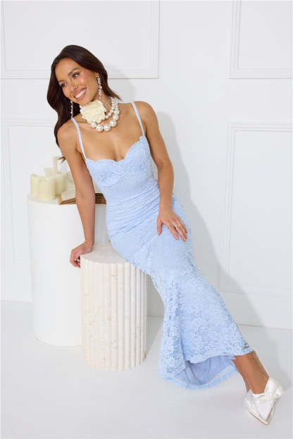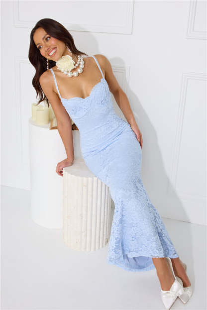 Soft Sweet Lace Maxi Dress Blue