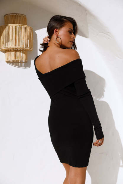 Adventures were made for true Voyagers like you babe! Embark on your travels with this must-have LBD. Featuring a slashed neckline with long sleeves. a chunky foldover neckline and a bodycon fit. Style yours with heels and waves.