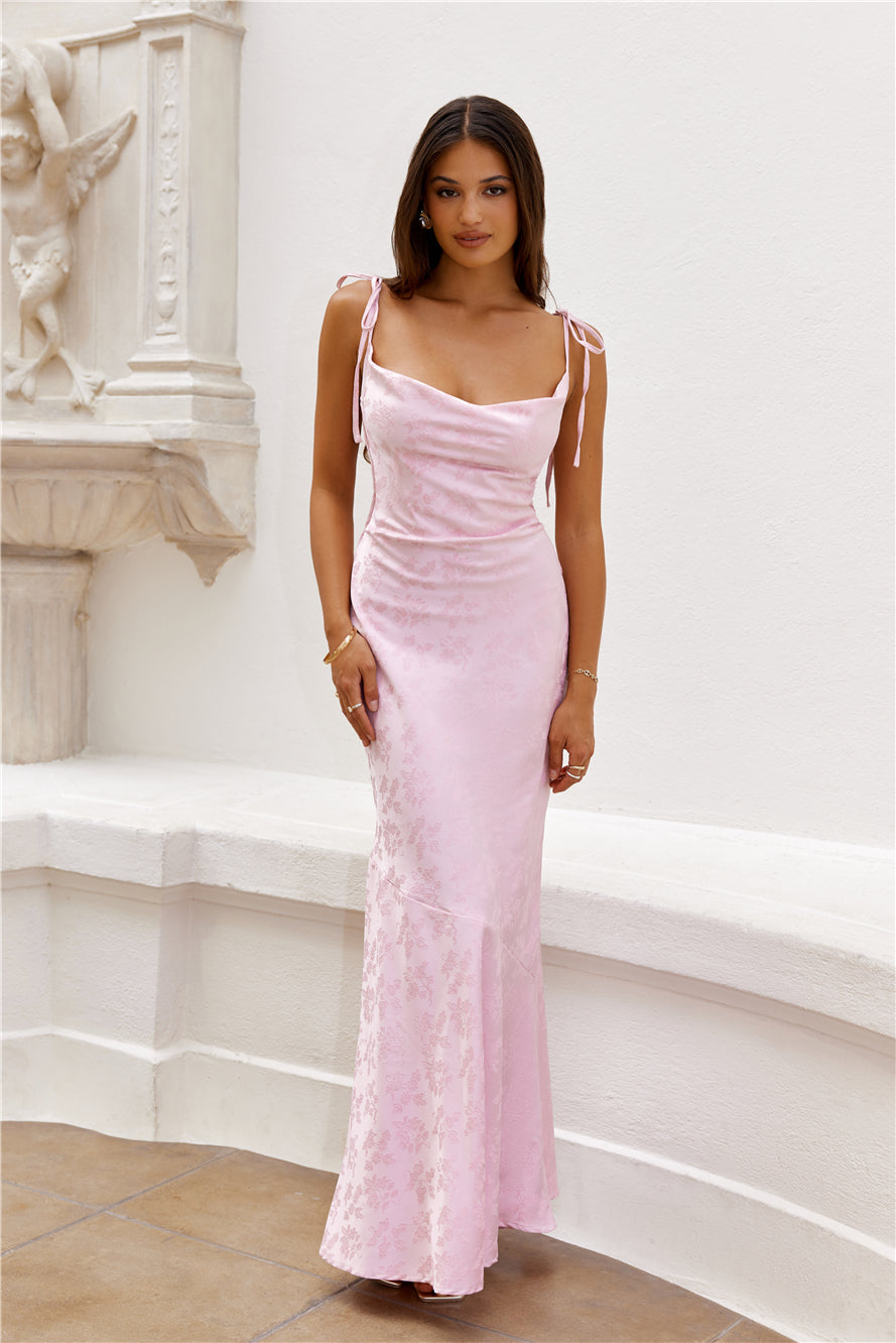 Rose Quartz One Shoulder Satin Maxi Dress Pink