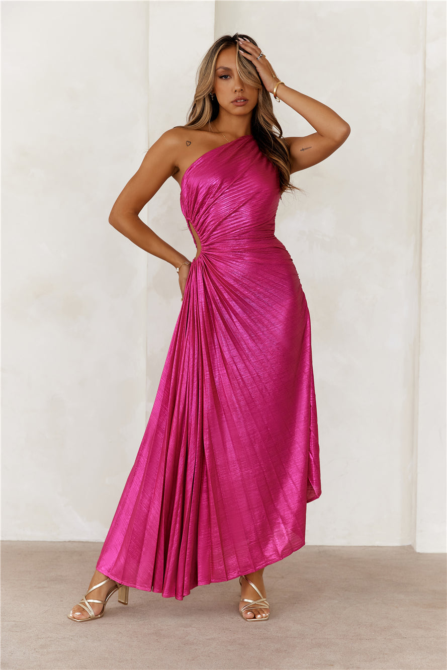 Sapphire Soirée One Shoulder Maxi Dress Fuchsia