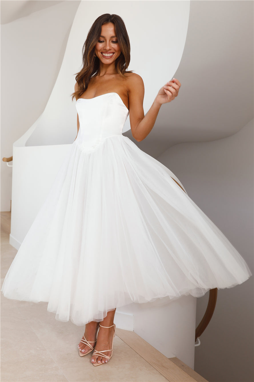 Castle Ballroom Satin Tulle Maxi Dress White