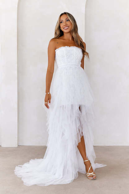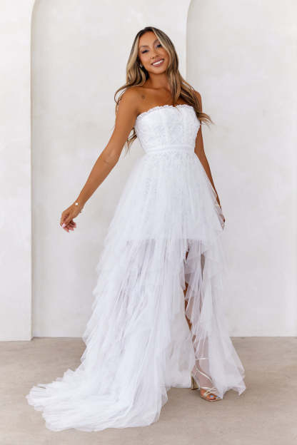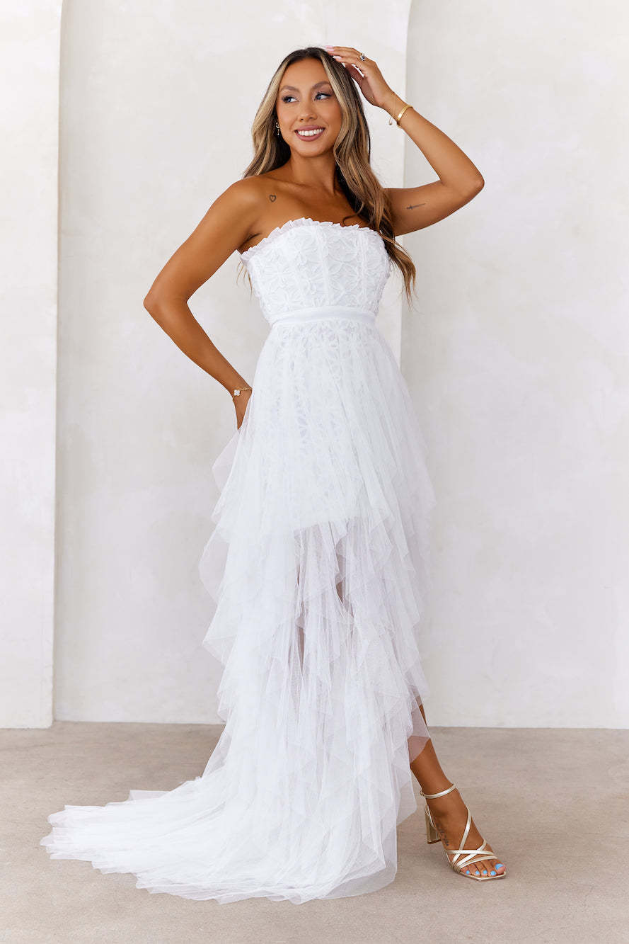 All The Attention Tulle Maxi Dress Off White