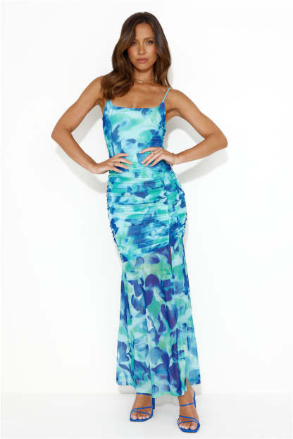 Love the look you're in. girl. The Along The Reef Mesh Midi Dress features a fit-to-flare design and a gorgeous patterned print. Style yours with heels and curls for your best look.