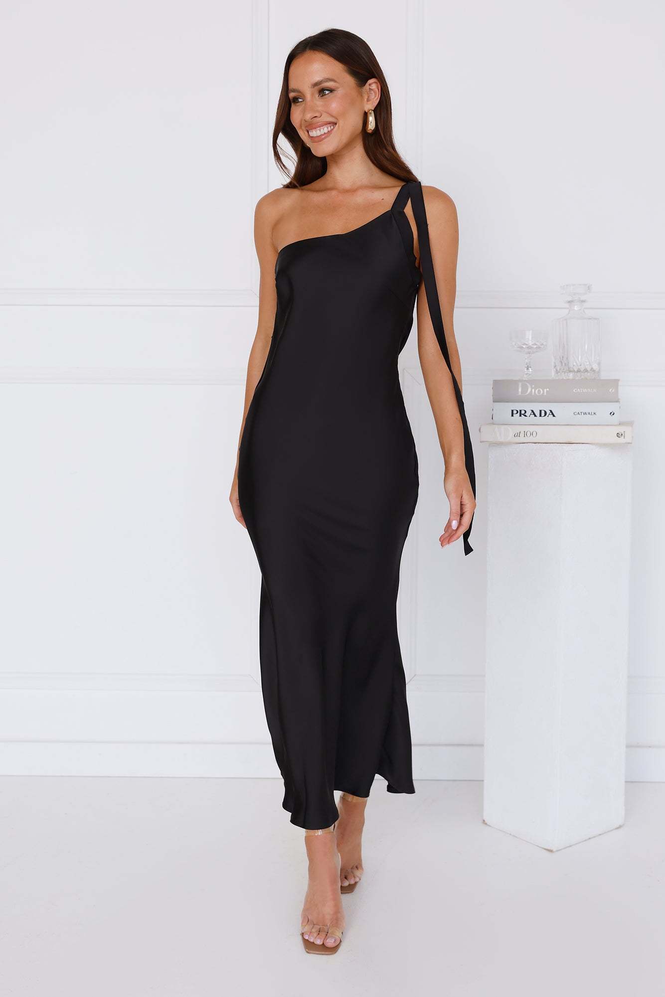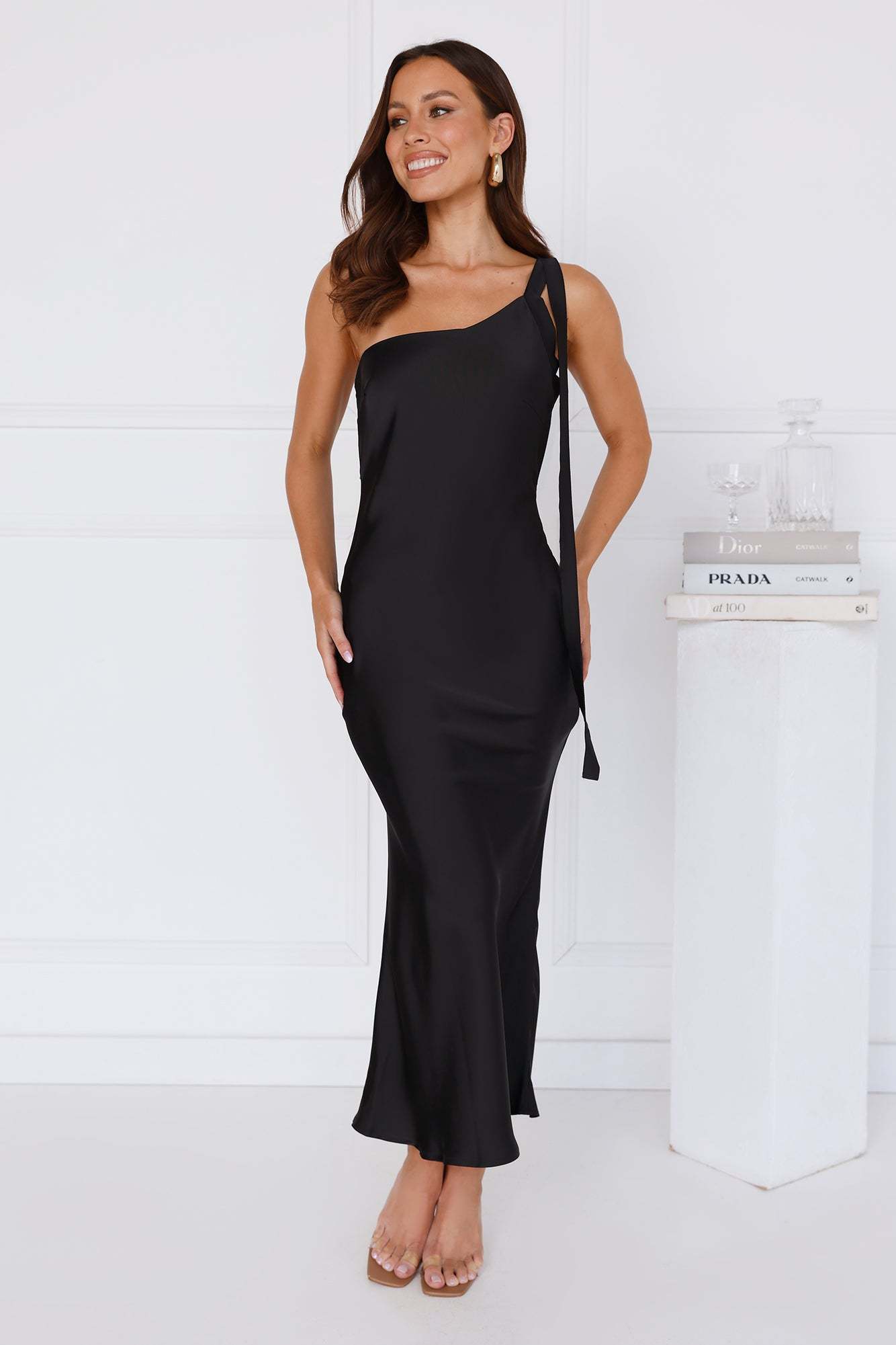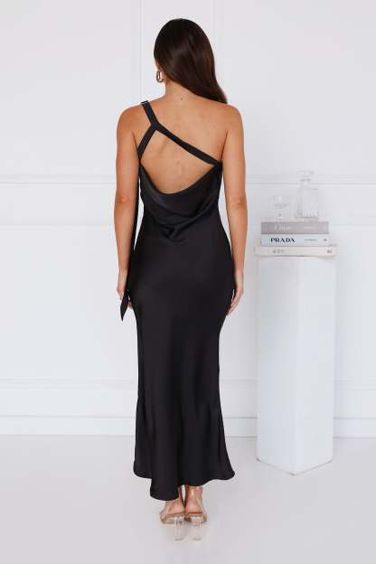 Black Tie Ballroom One Shoulder Satin Maxi Dress Black