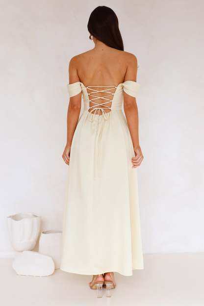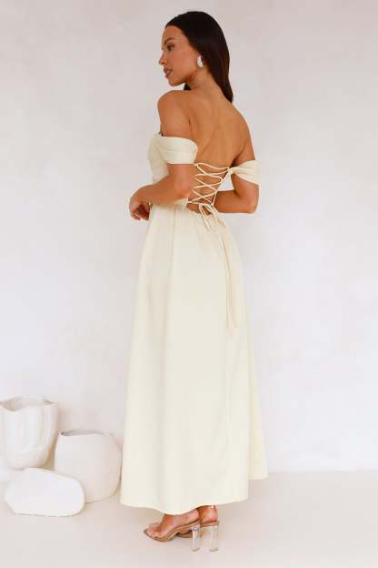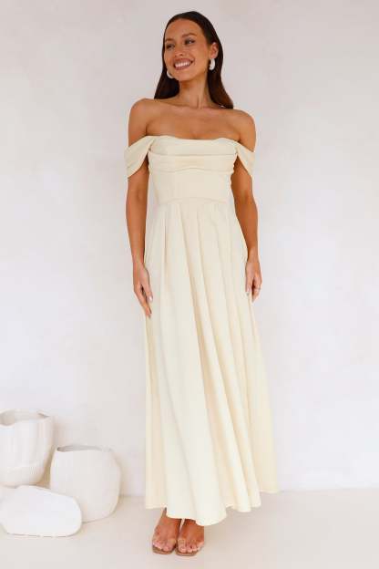 Classy Affair Off Shoulder Satin Maxi Dress Yellow