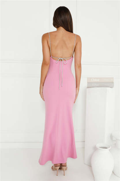 Crystal Glitz Maxi Dress Pink