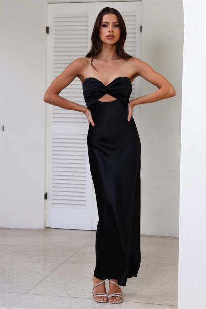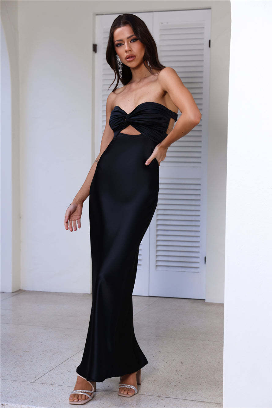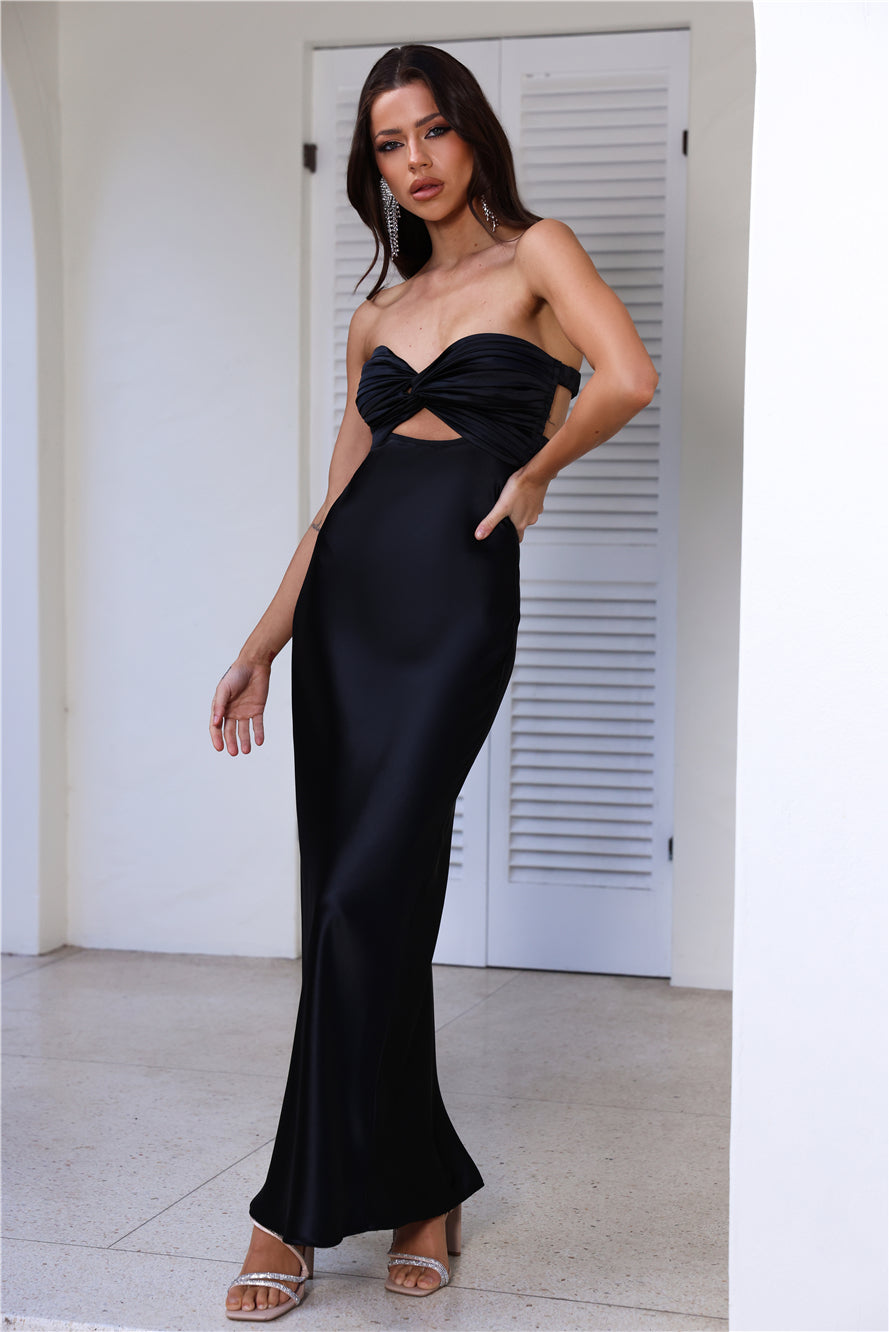 Curious Heart Satin Maxi Dress Black