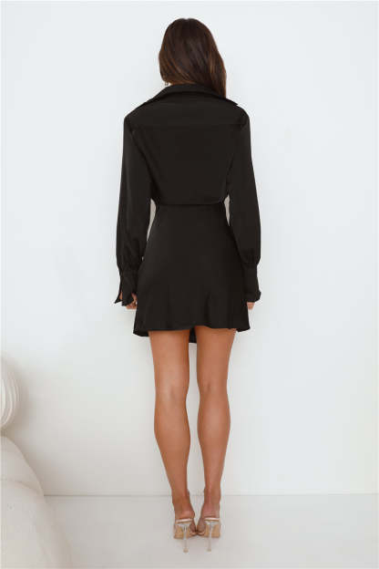 Days Of Love Long Sleeve Satin Mini Dress Black