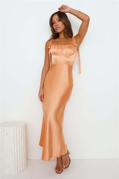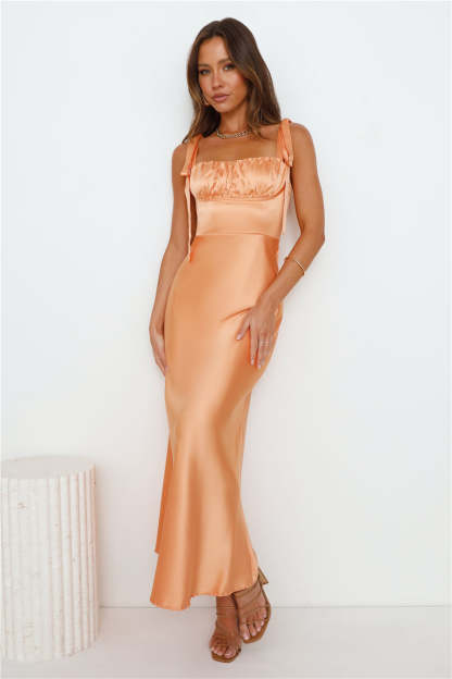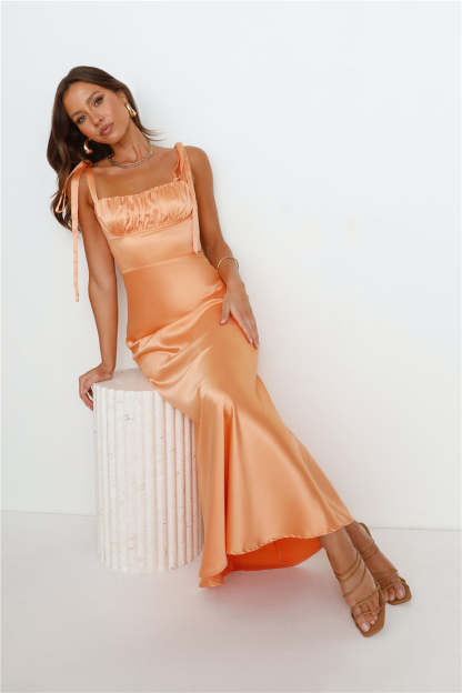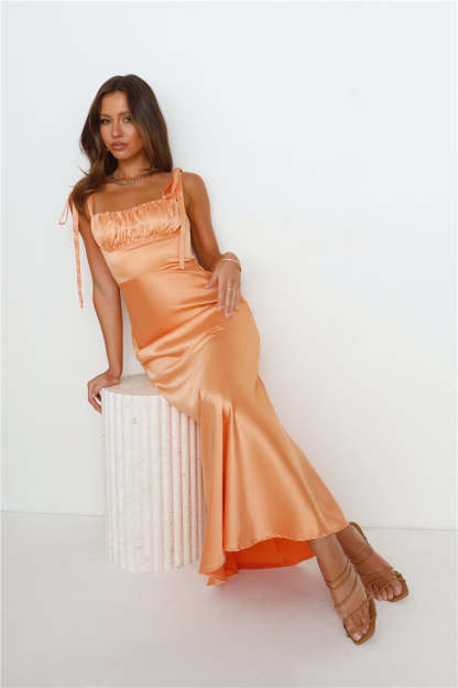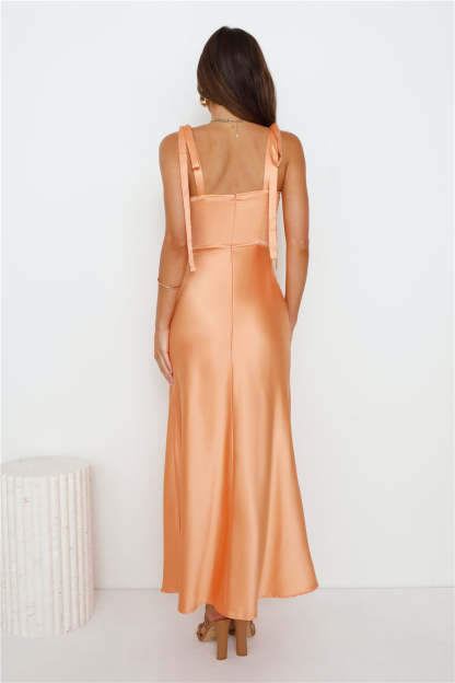 Define Luxury Satin Maxi Dress Peach