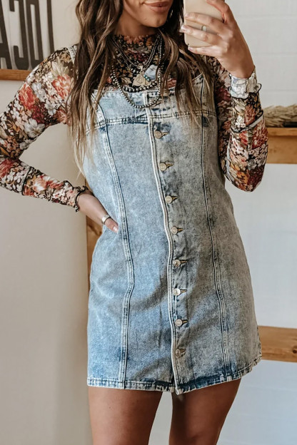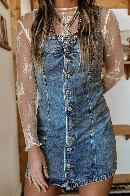 Distressed Denim Slim Fit Button Up Slip Mini Dresses-LightBlue