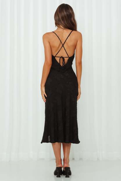 Our Drinks On Me Midi Dress screams vibes whenever you wear it! Exuding elegance from dusk to dawn. this sophisticated gown features a cowl neckline and our favourite lace-up back. If you're attending the Spring Carnival or a wedding. we suggest wearing yours with a shaved block-heel. and pared-back adornments in sparkling golds.