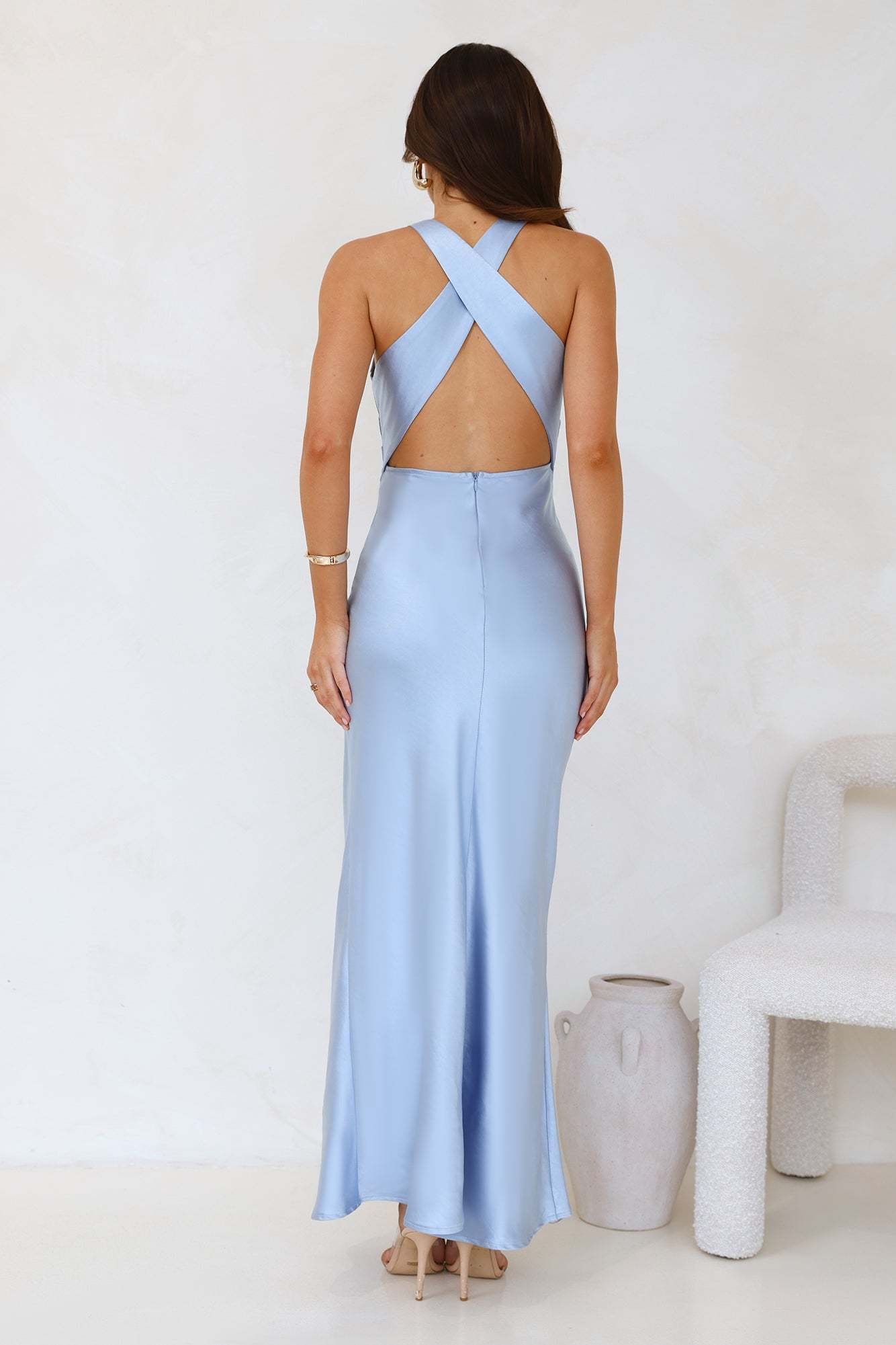 Eden Satin Maxi Dress Blue