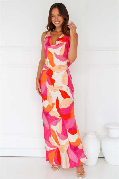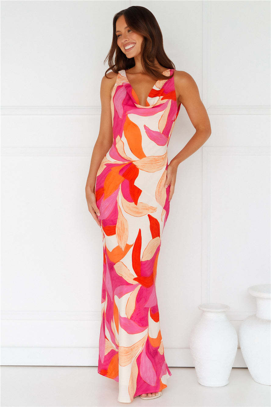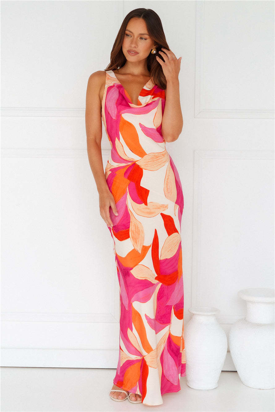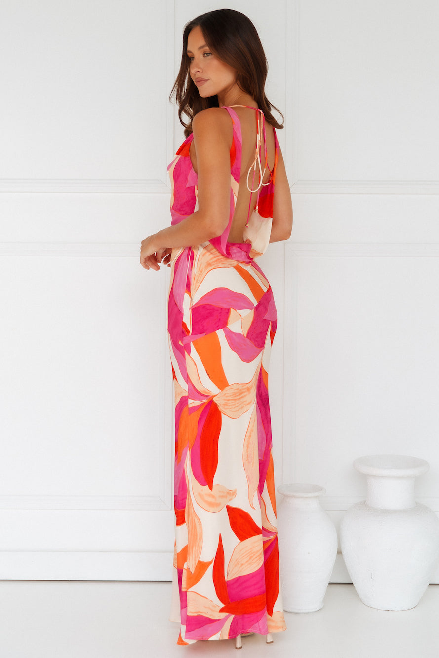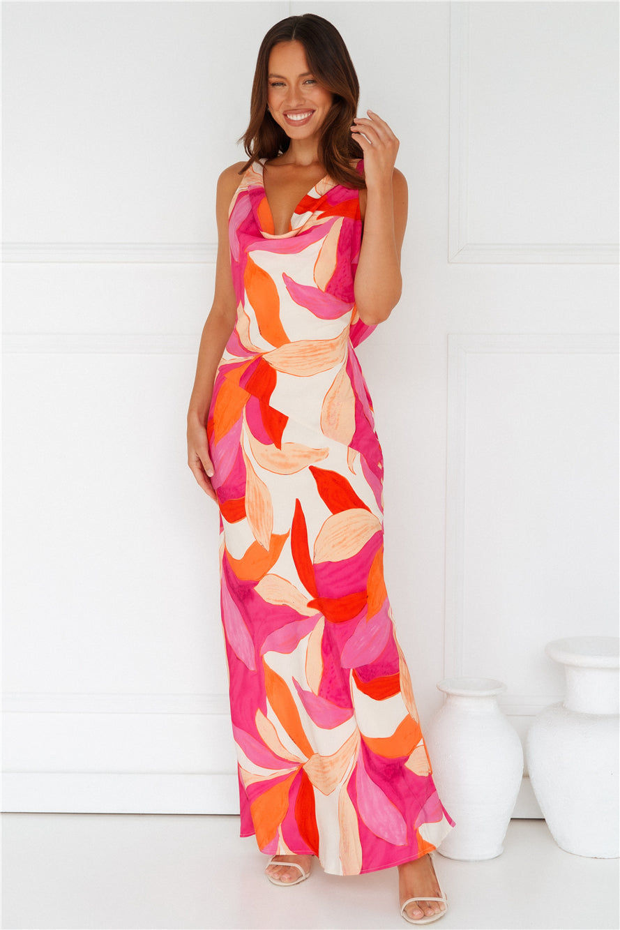 Embrace the colourful side with the Everyday Magic Maxi Dress. Featuring a gorgeous cowl neck and back. with a back tie for a secure fit. Style this flowy silhouette with heels and curls to be the main attraction.