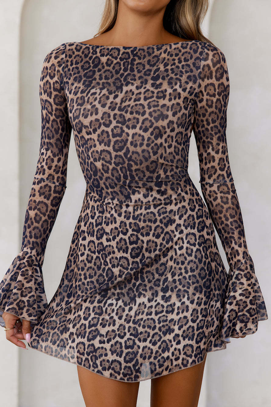 Exotic Edge Long Sleeve Mesh Mini Dress Leopard