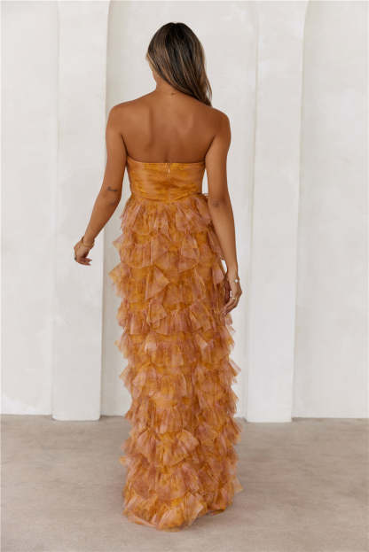 Festival Of You Strapless Tulle Maxi Dress Mustard
