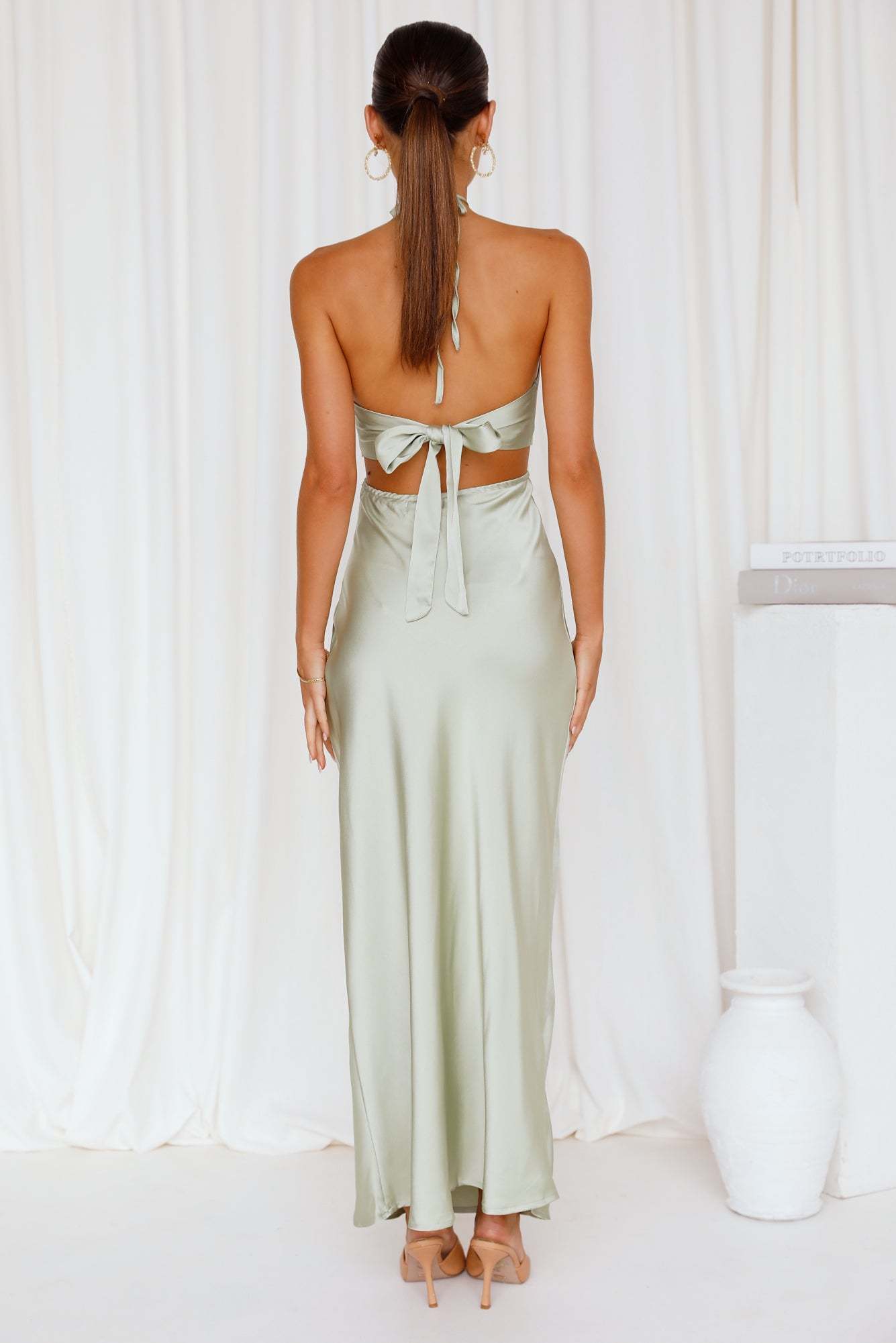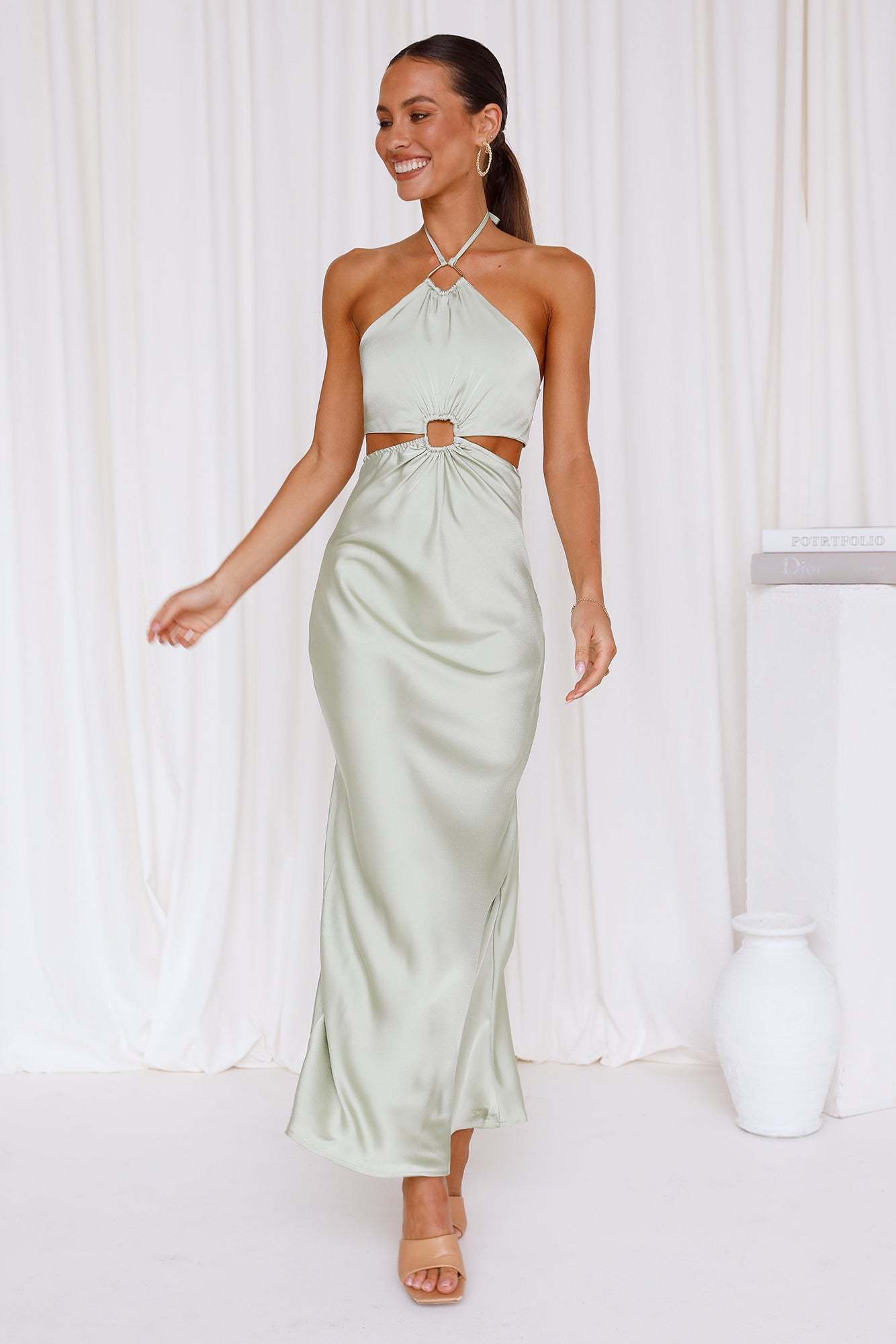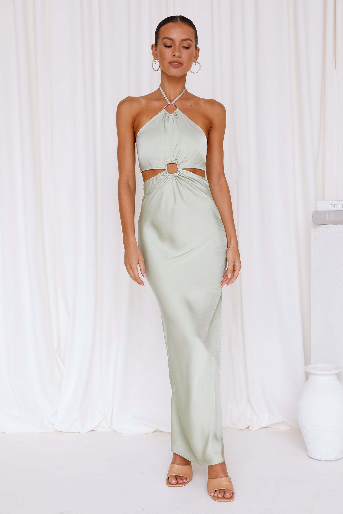 Need a slip with a difference? Slay in the Found You Maxi which features a halterneck with a square cut-out at the front. an open back with a tie and a long flowy skirt. Style yours with mules and dainty jewellery.
