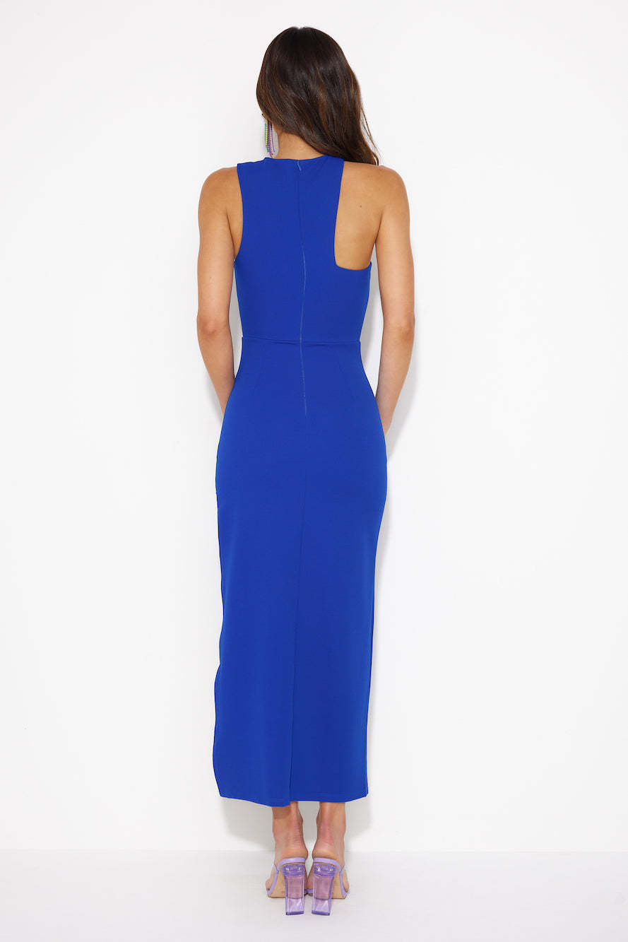 Get ready to make a stylish statement in the Girl In The Shadow Midi Dress. Featuring a cutout and split to the skirt. Style with heels for the ultimate party look.