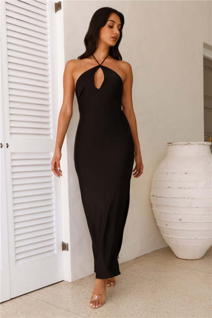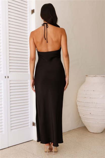 hayhty Admired From All Angles Satin Halter Maxi Dress Black