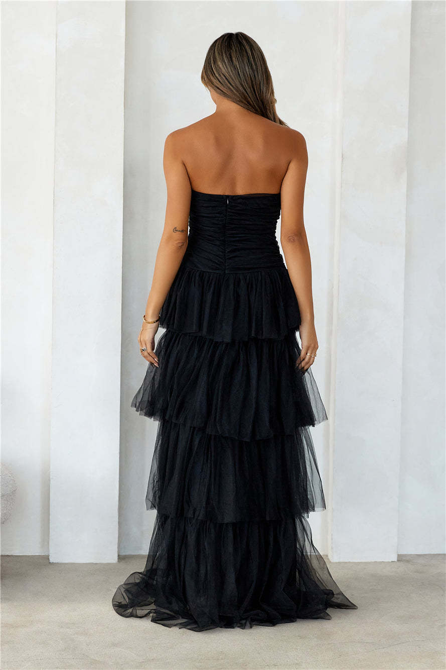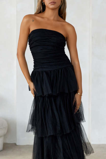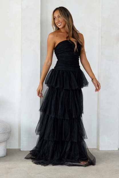 hayhty Hidden Opal Strapless Tulle Maxi Dress Black
