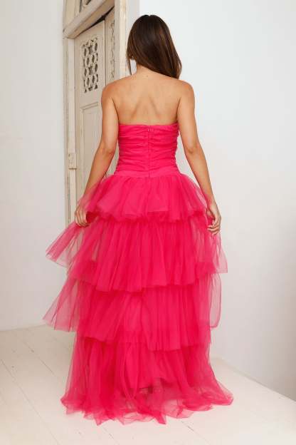 hayhty Hidden Opal Strapless Tulle Maxi Dress Hot Pink