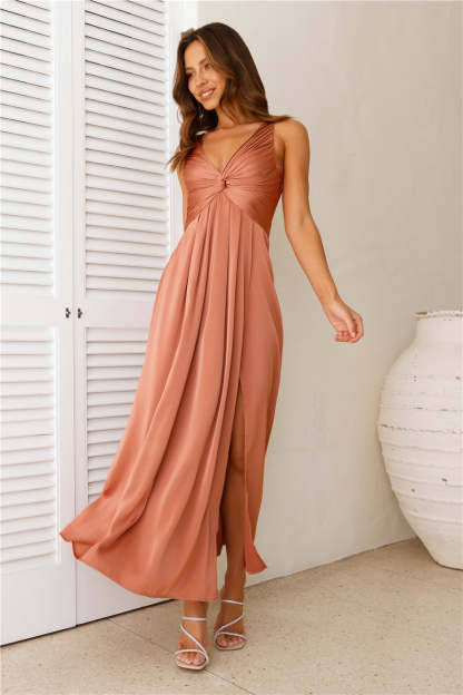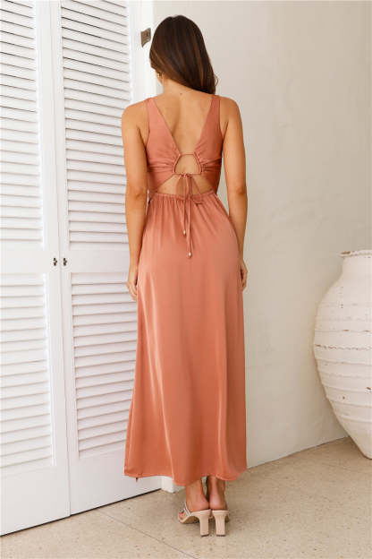 hayhty Piece Of Your Love Satin Maxi Dress Rust