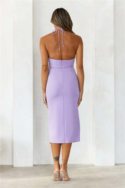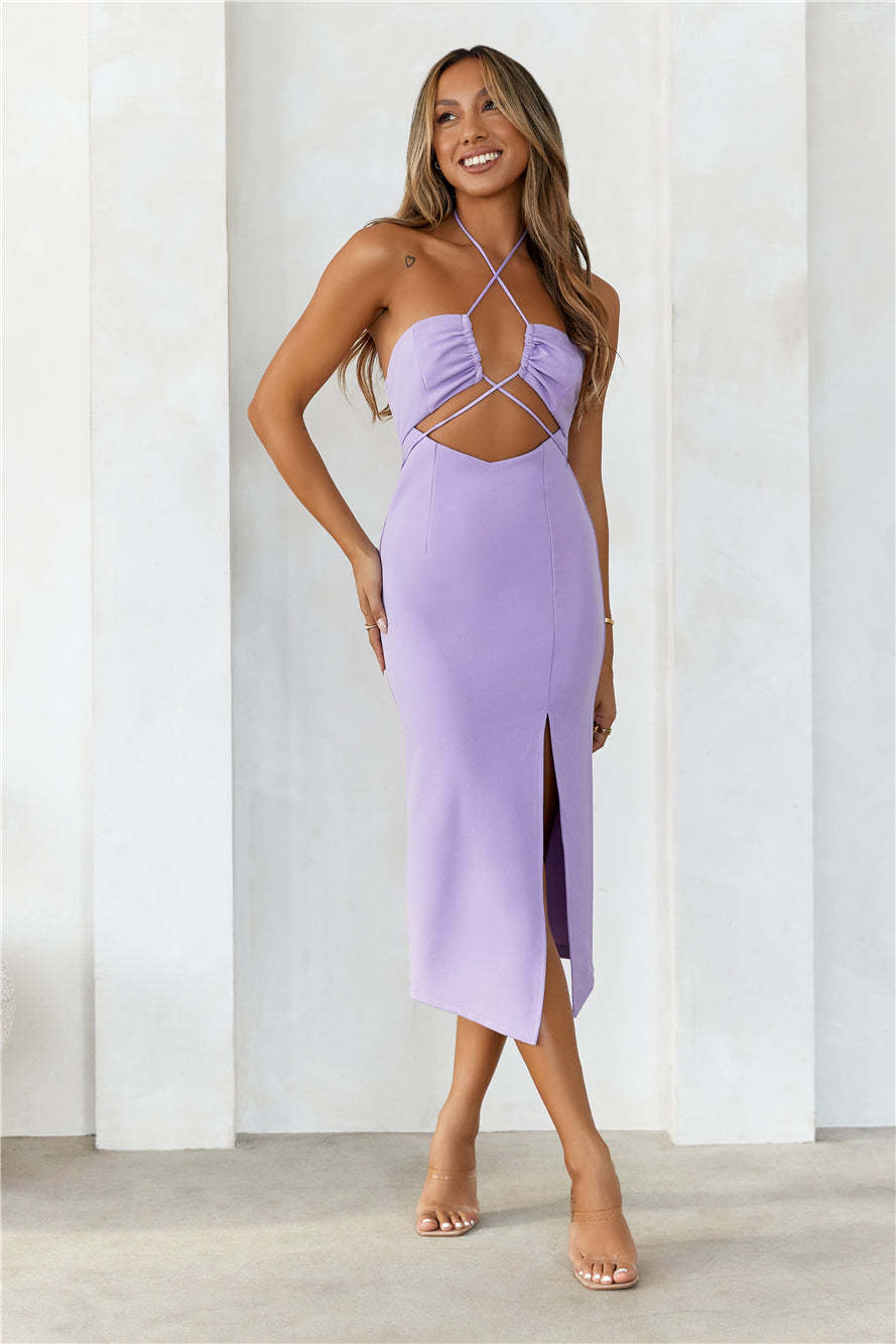 hayhty Stolen Attention Halter Midi Dress Lilac