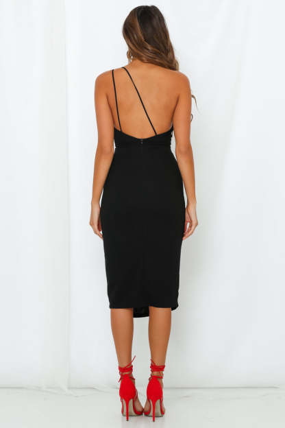 Strike a pose and show off them curves with our stunning Taking It Back Dress. Offering a stretchy crepe construction that flatters your figure. the garment boasts a one-shoulder neckline with a double shoulder strap and a cheeky little thigh vent for a flirty touch. No need for bras because this dress comes with bust padding!