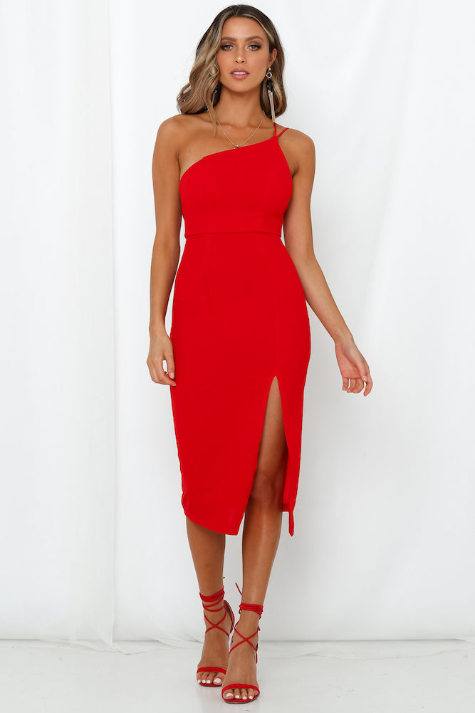 - Red midi dress.