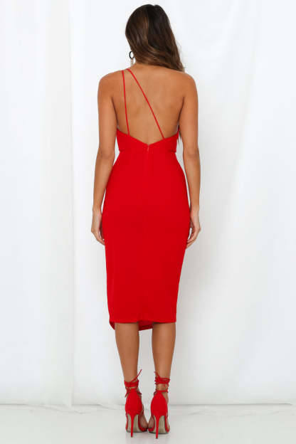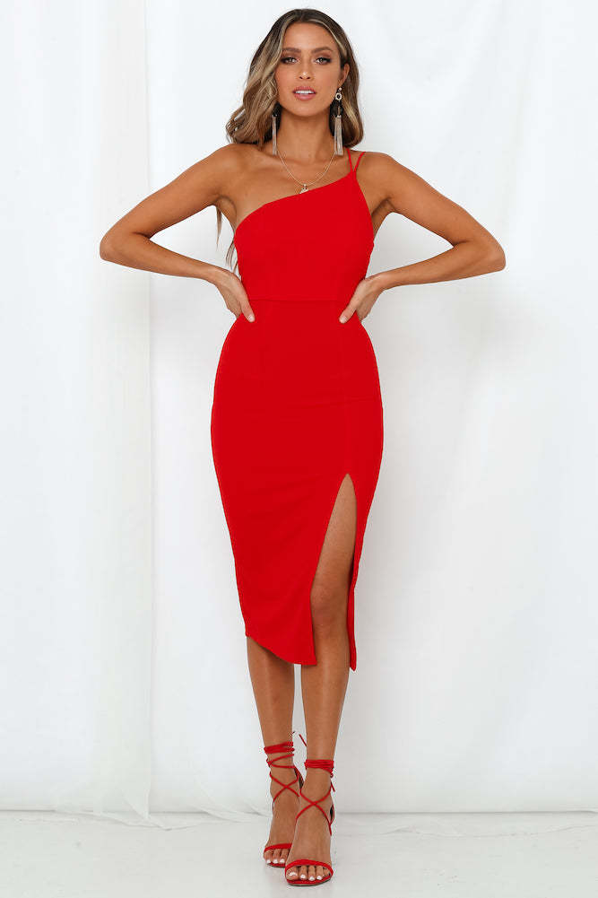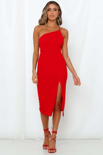 Strike a pose and show off them curves with our stunning Taking It Back Dress. Offering a stretchy crepe construction that flatters your figure. the garment boasts a one-shoulder neckline with a double shoulder strap and a cheeky little thigh vent for a flirty touch. No need for bras because this dress comes with bust padding!