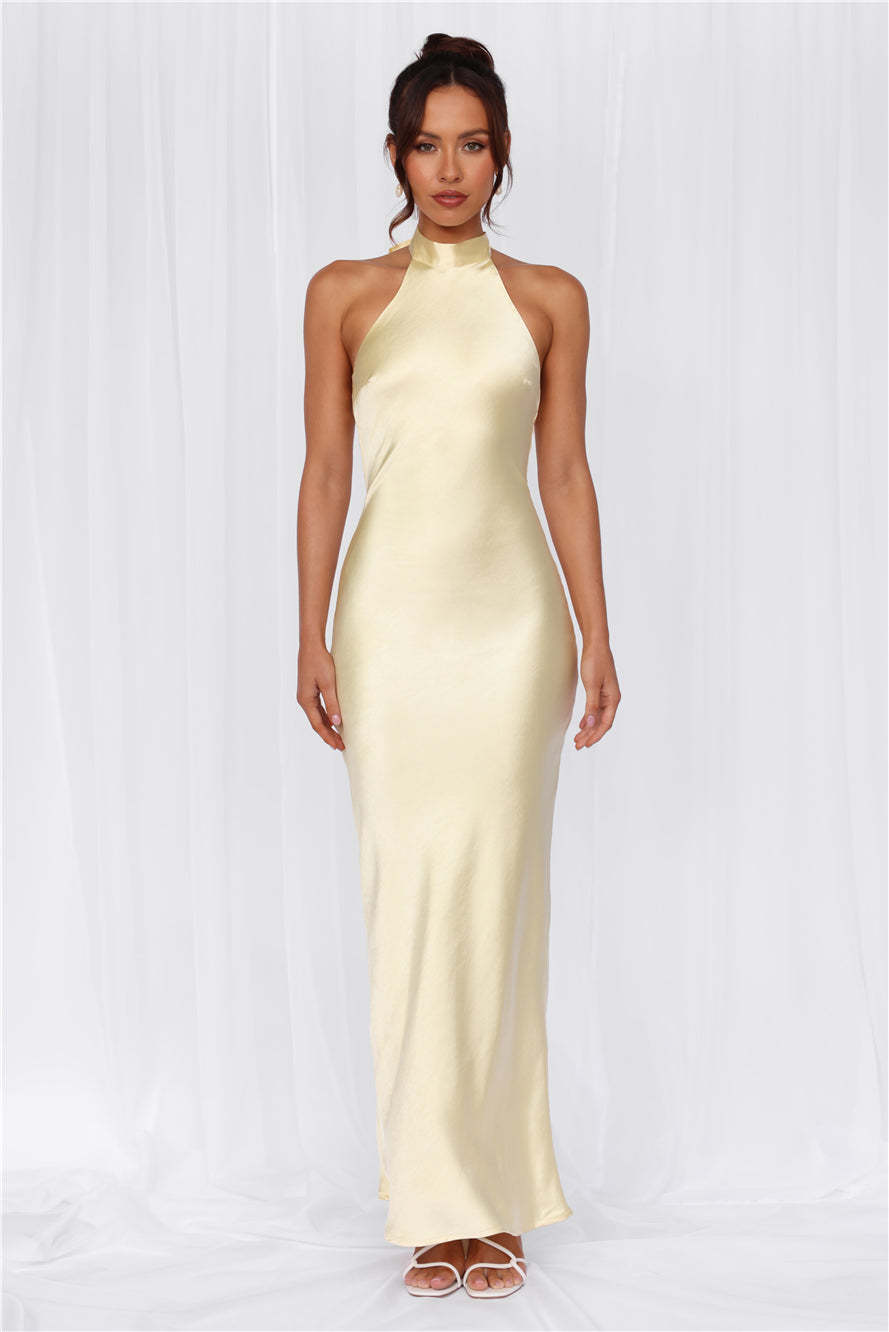 Hayhty The Cleo Halter Satin Maxi Dress Yellow