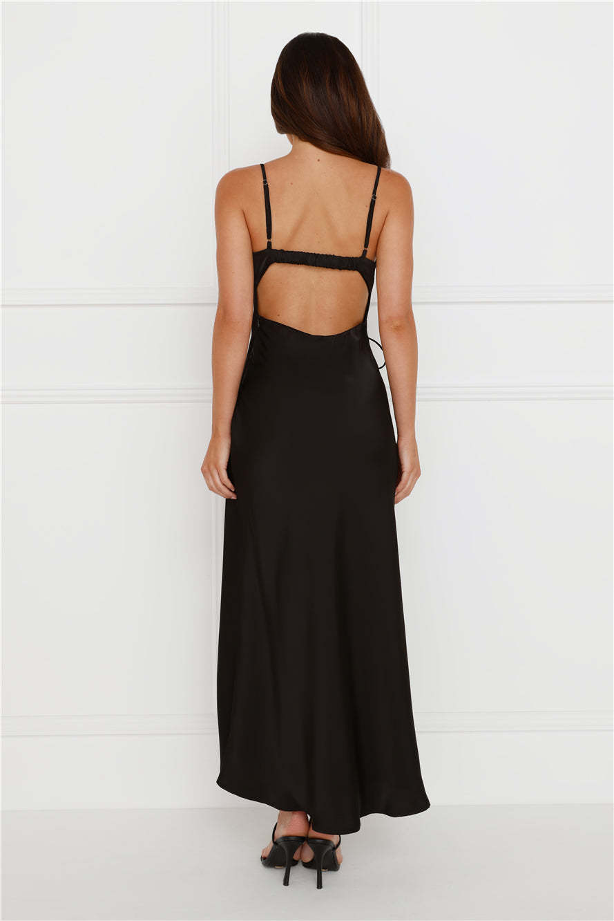 Hideaway Place Satin Maxi Dress Black