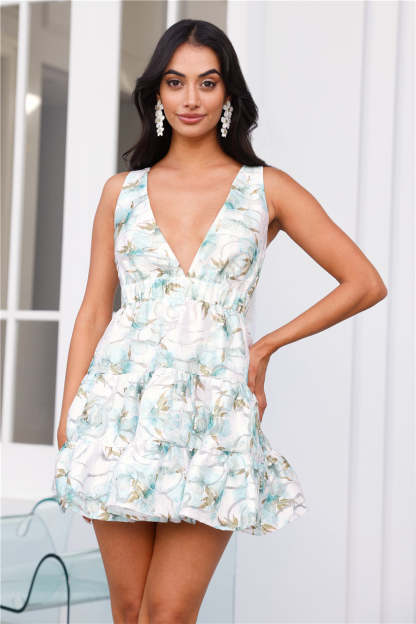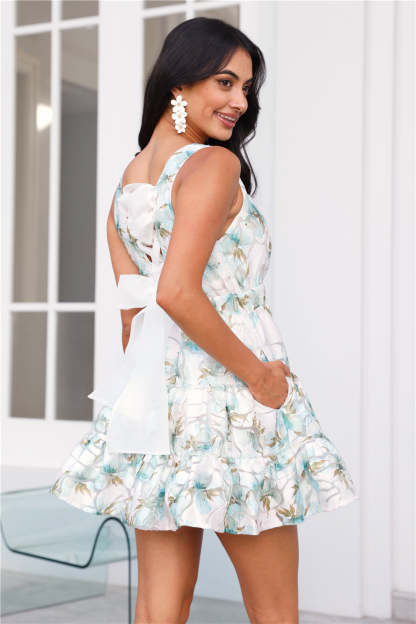Earn style points in the hayhty Hour Of Power Mini Dress. Featuring an elasticated waist. an organza tie up back and side seam pockets. Style with heels to highlight the gorgeous skirt.
