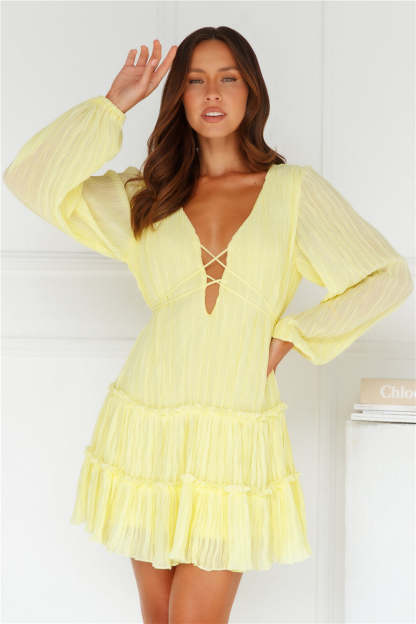 Indira Long Sleeve Mini Dress Yellow