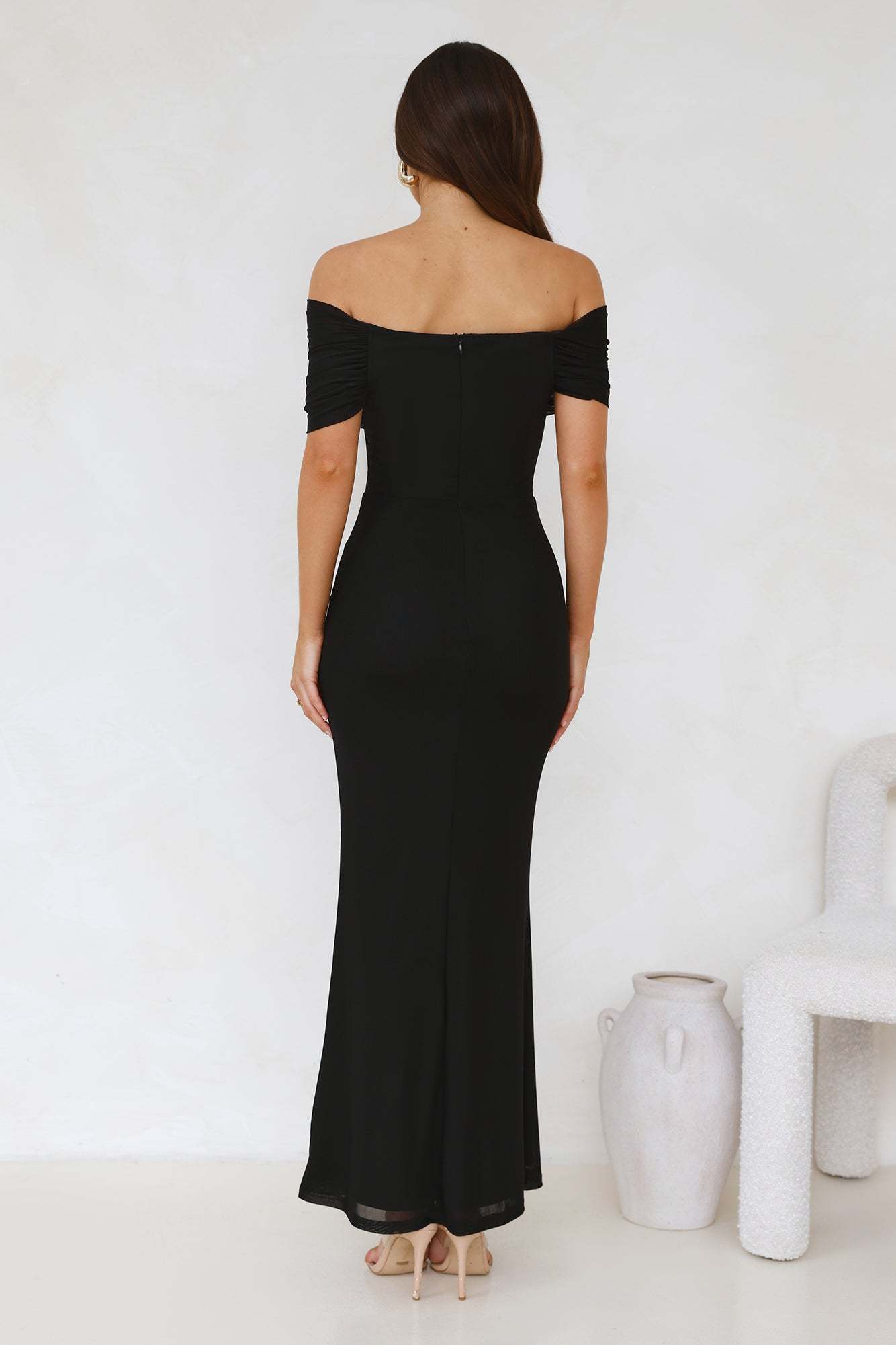 Show up and impress in the Invited Off Shoulder Mesh Maxi Dress. Featuring a strapless. off-the-shoulder design and a fit-to-flare silhouette. We love this dress paired with heels and sparkly accessories.