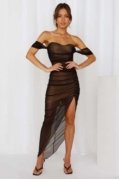 Let's hear that roar KWEEN! In the Jungle Queen Midi you'll be ruling the kingdom. Featuring ruching all over with a slit. a straight neckline with an off the shoulder detail and puffy short sleeves. Style yours with strappy heels and an updo.