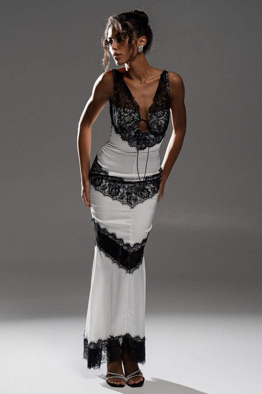 Lace Patchwork Slim Fit Colorblock Maxi Tank Dresses-White Pre Order