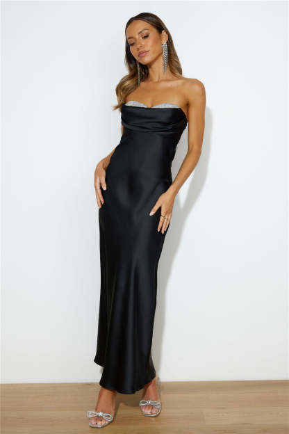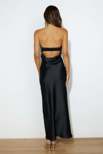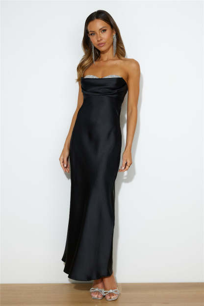 Luxe Dance Satin Maxi Dress Black