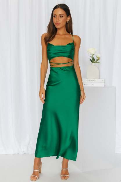 Be the hottest chick around with the Made Love Midi. Featuring a straight neckline with a lace-up back. midriff cut-out and a flowy long skirt. Style yours with mules and waves.