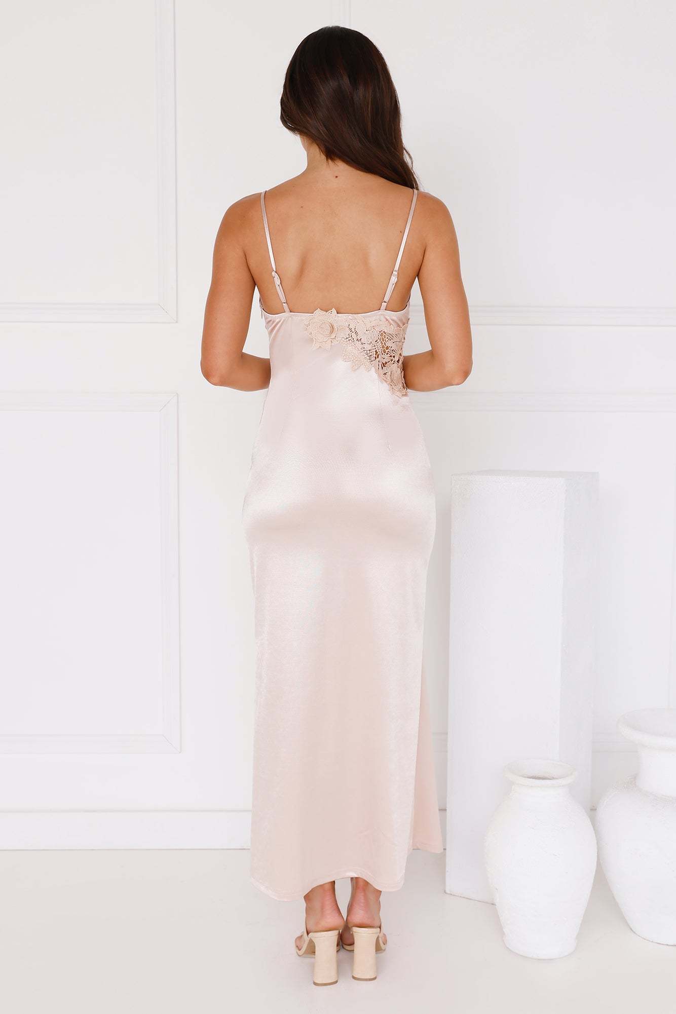 You'll have all the attention on you! The Magnetic Connection Satin Maxi Dress features gorgeous lace embroidered details with a sheer panel and a V-neck. Style with heels to get the party started!