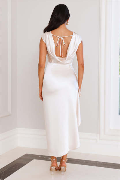 Masquerade Party Satin Maxi Dress Champagne
