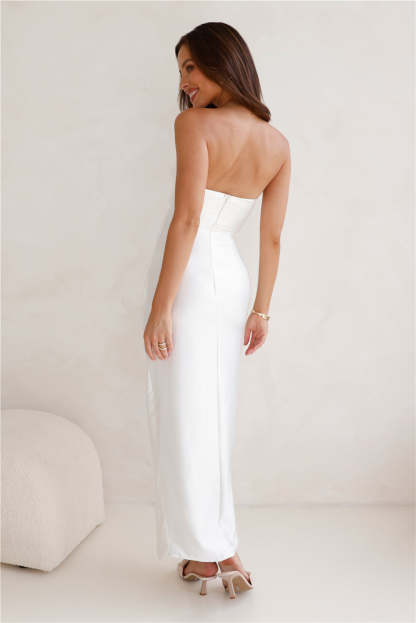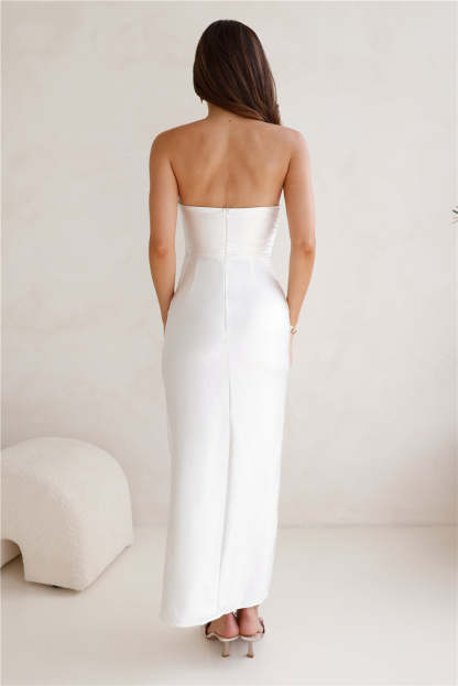 Miss To Mrs Strapless Satin Midi Dress White
