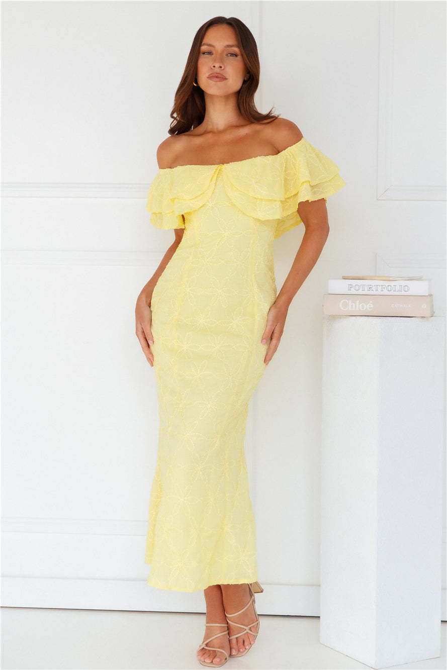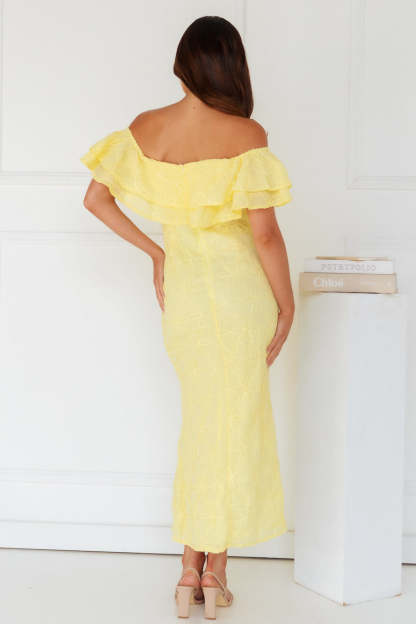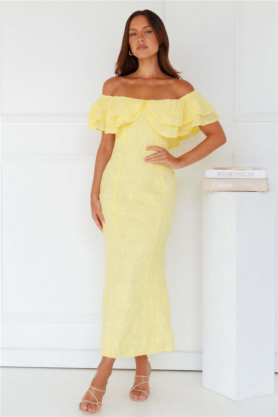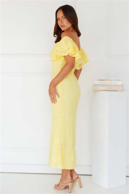 Moment Of Dance Off Shoulder Maxi Dress Yellow