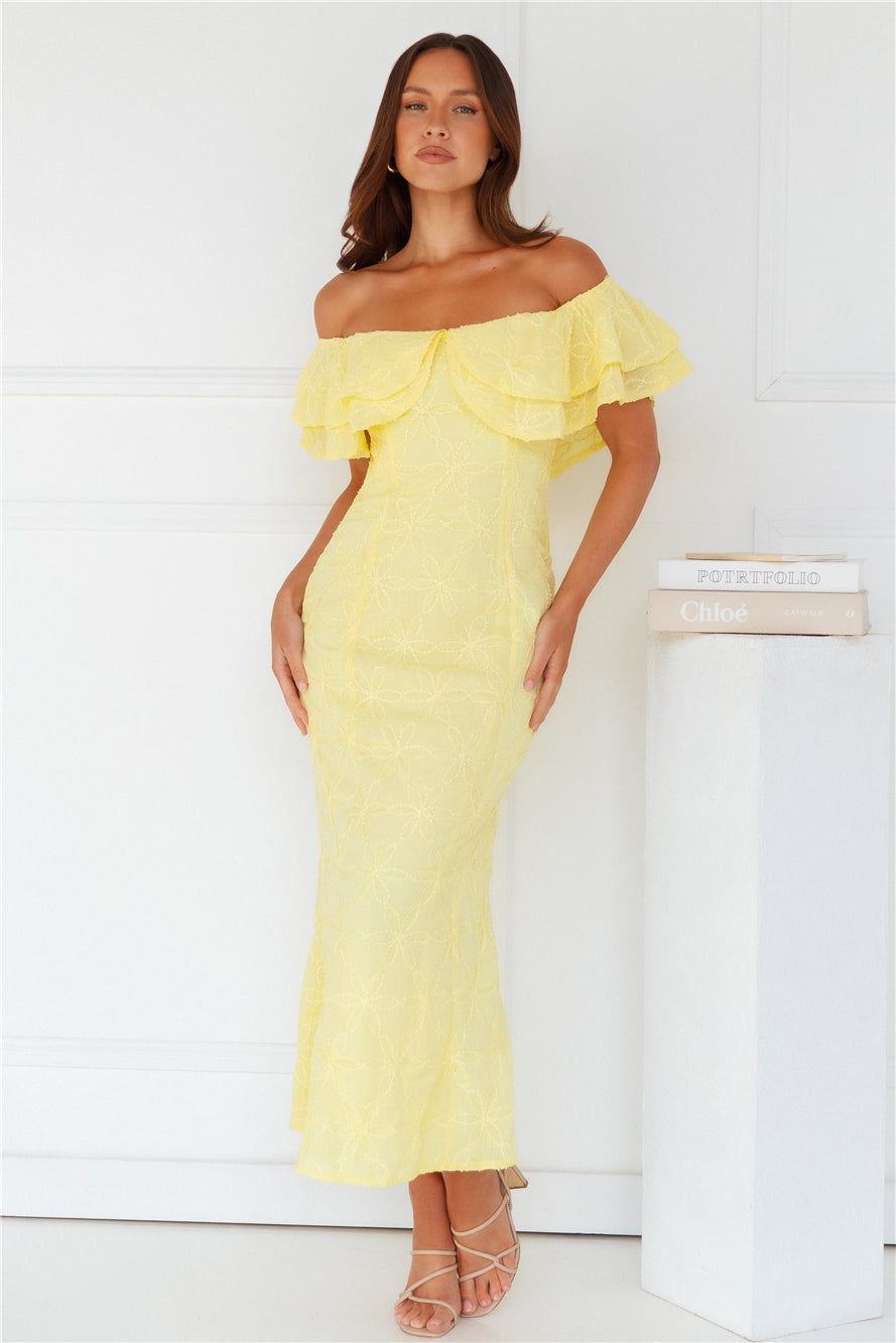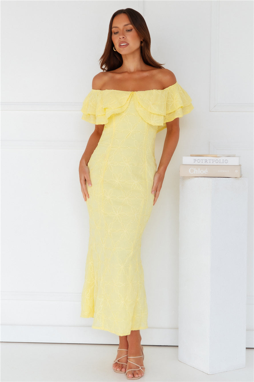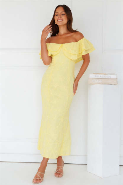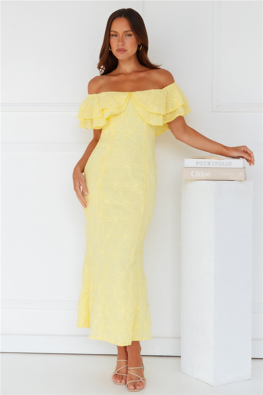 Moment Of Dance Off Shoulder Maxi Dress Yellow